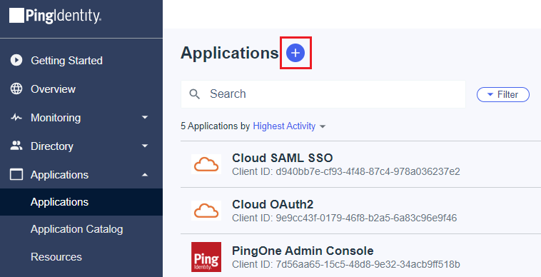 Log into your PingID environment. Go to Applications and click + to create a new application.