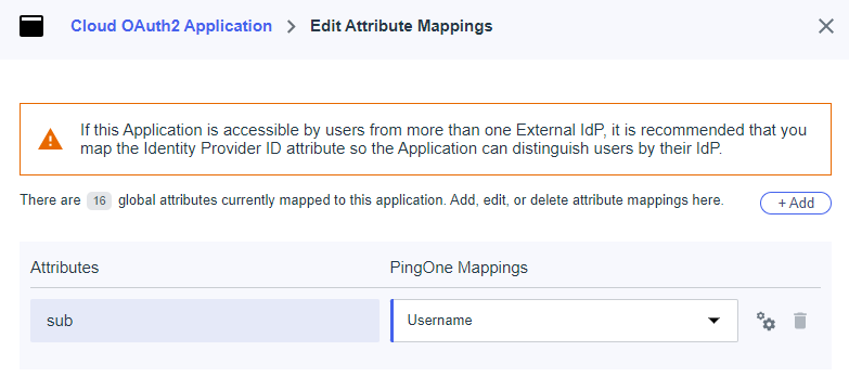 Once saved, click the Attribute Mappings tab, then click the pencil icon to edit. You should see one Attribute Mapping — sub = User ID.