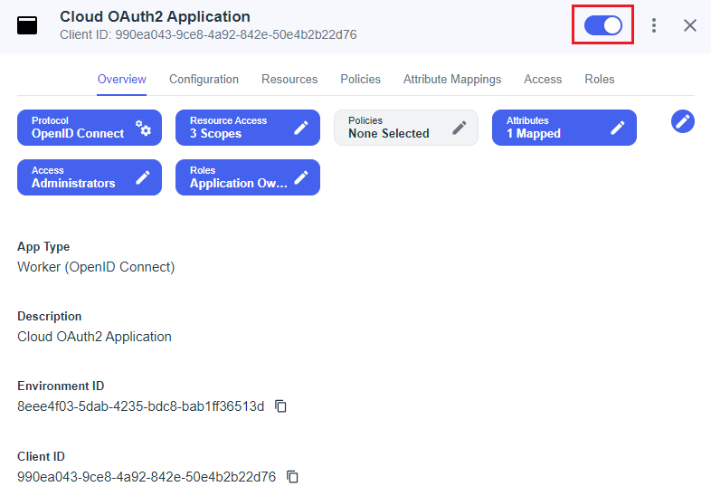 To set up authentication and group synchronization with the PingID provider, you must create an OAuth2 Worker application in your PingID environment: