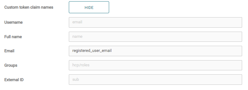 For example, if the Auth0 provider is returning email value in its token claims (named registered_user_email), you can input registered_user_email into the email field, and upon successful login, the email from the custom token claim will be stored under the email user attribute.