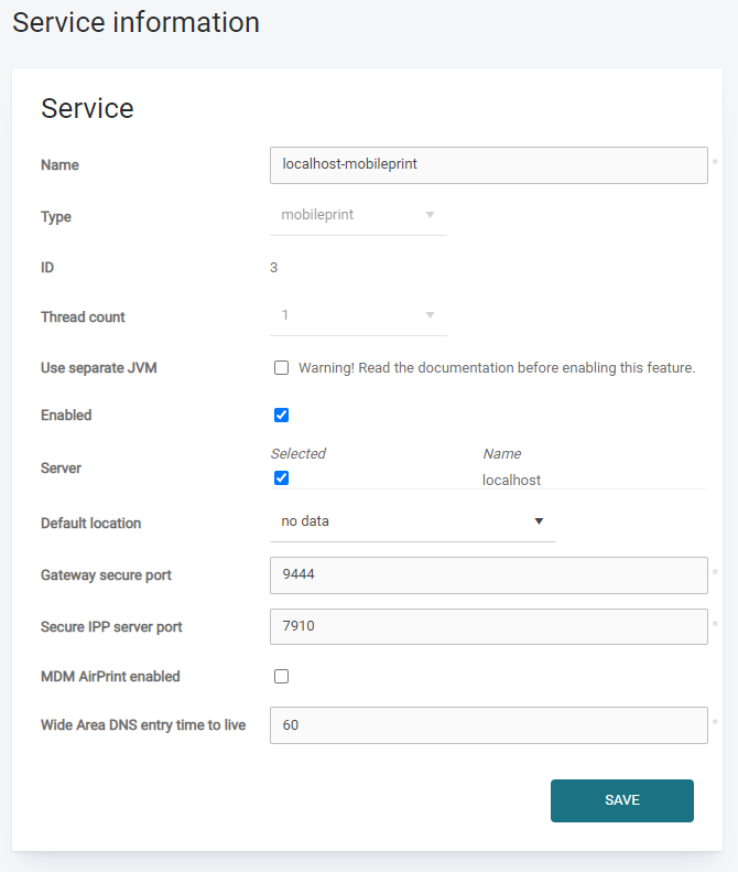 9. In the Settings > General settings > Mobile Print section under the account, select from the drop-down the mobile service and make sure that “Enable MDM Single Sign On” is unchecked.