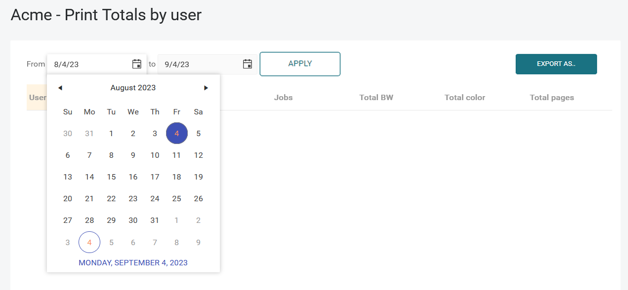 Select the date range and click Apply.