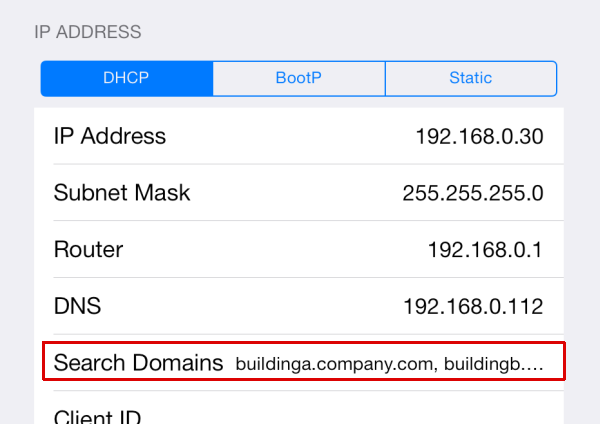 - Mobile devices obtaining a new lease from the DHCP should now show the correct search domains.