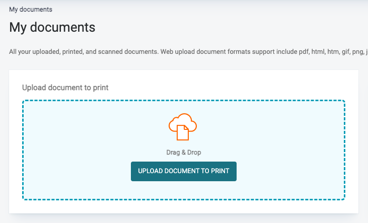 In this area, you can upload documents that you wish to print.