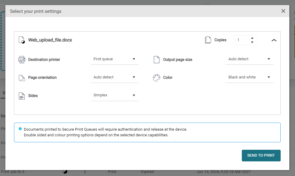 The print job(s) will appear on the tab with waiting print jobs.