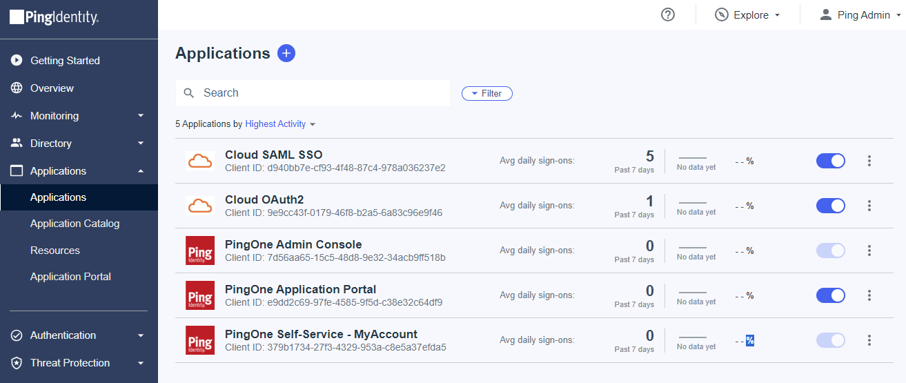 To set up a single sign-on (SSO) with the PingID provider, you must create two applications in your PingID environment: