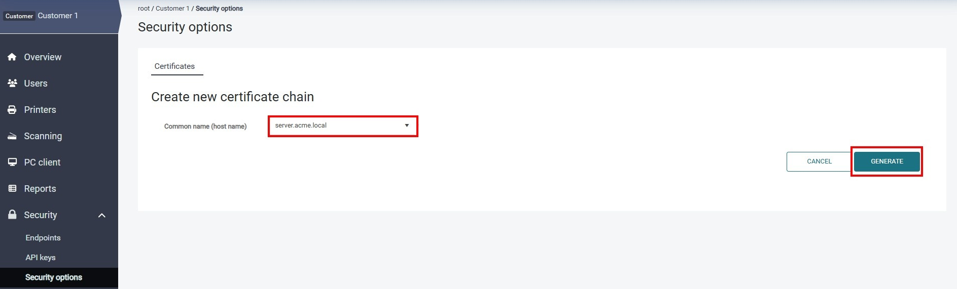 If not, create a new one by clicking Create, selecting the server host name and then clicking Generate.