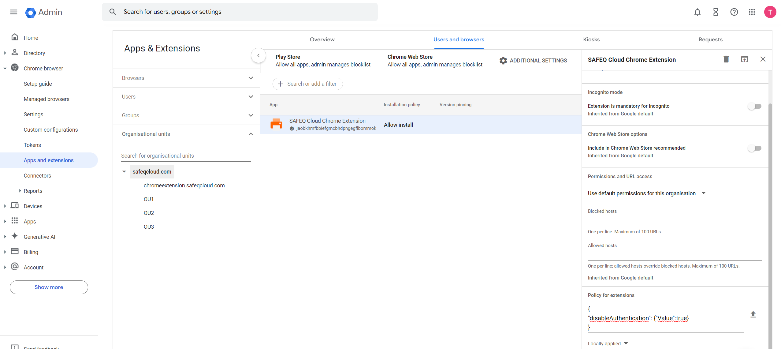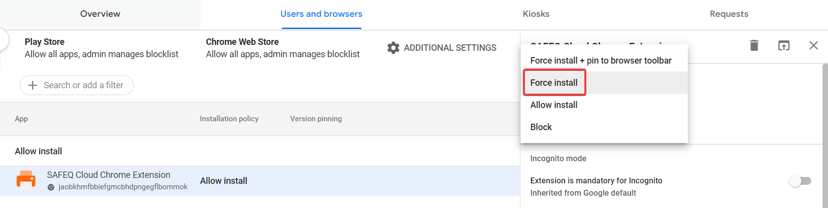 Configuring the extension remotely in Google Admin Console