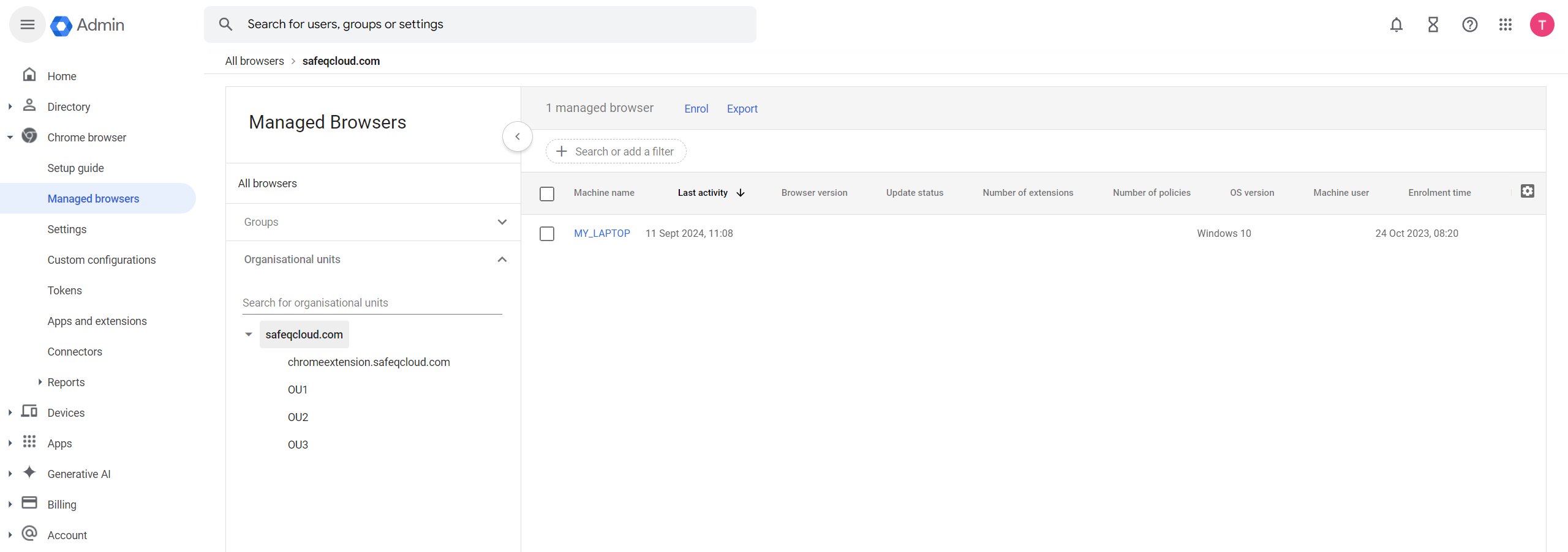 Go to Managed browsers and check that all needed user browsers are enrolled and listed in the table. If not, enroll the required browsers in the corresponding Organizational Unit.
