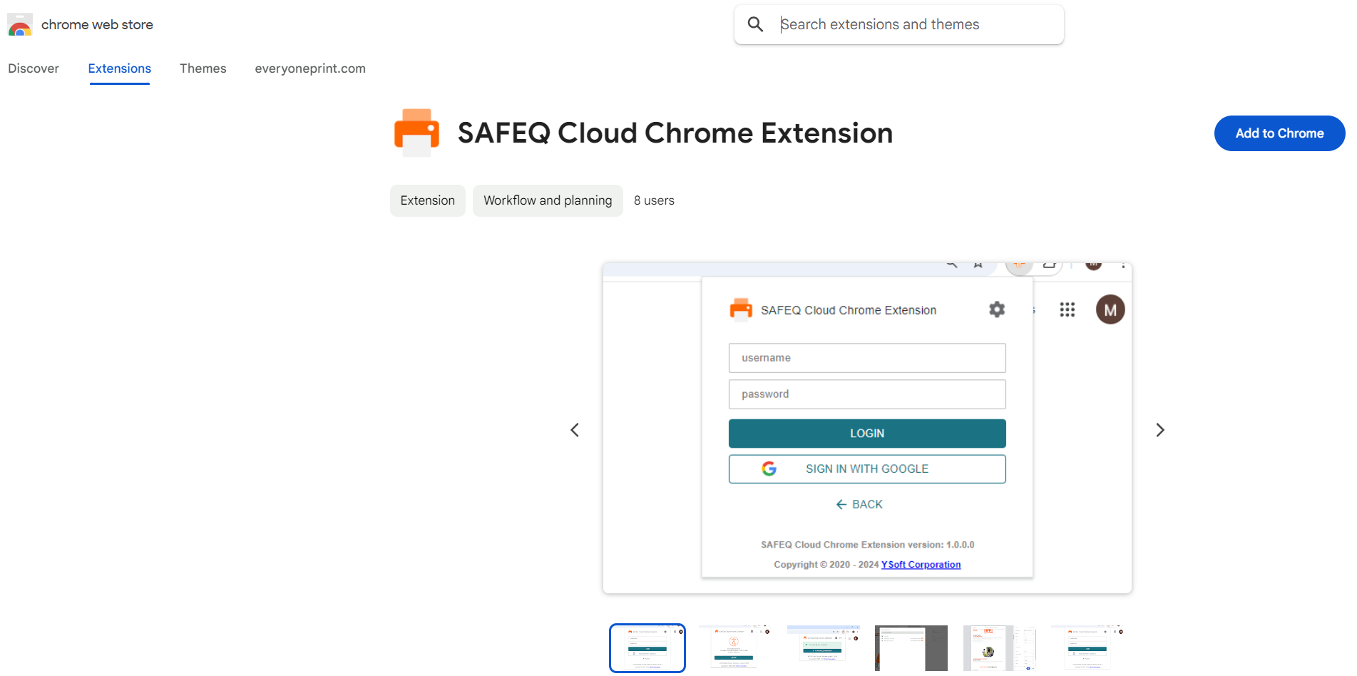 Search for the SAFEQ Cloud Extension and click Add to Chrome.