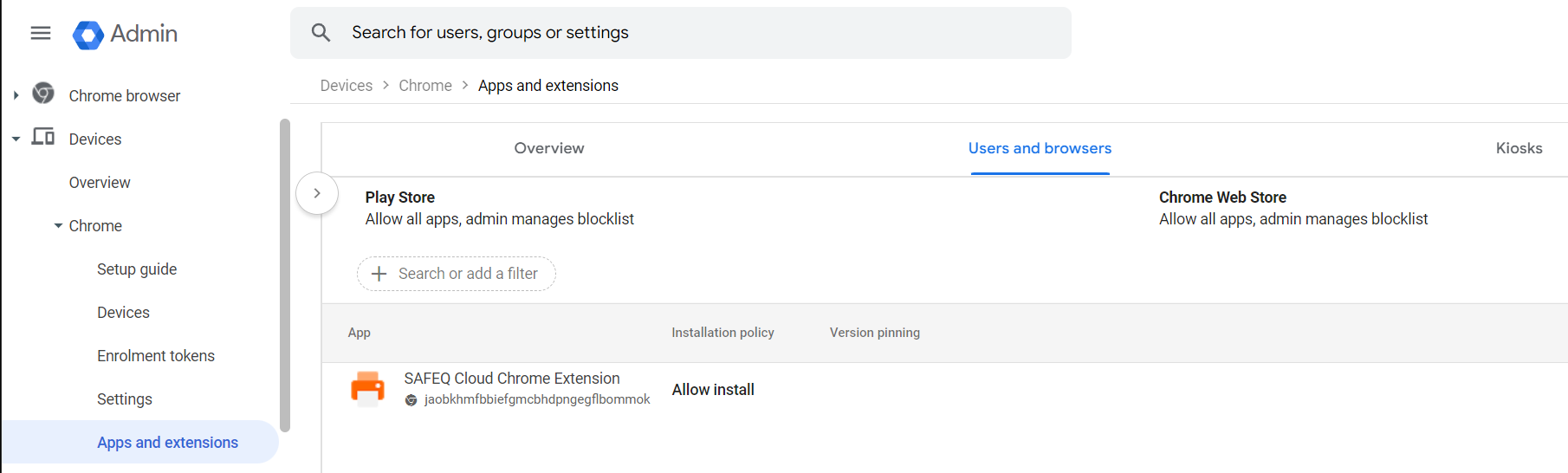 Go to Apps & extensions and click the Users and browsers tab.