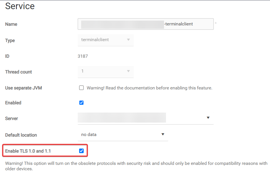 By default, PMC uses TLS 1.3 for all communication. If PMC can't communicate with an endpoint (such as an MFD) via TLS 1.3, it will fall back to TLS 1.2. If the endpoint doesn't support TLS 1.2 (as some older MFDs don't) and you have selected the Enable TLS 1.0 and 1.1 option in the terminalclient service, PMC will also try TLS 1.1, and (if required) TLS 1.0.