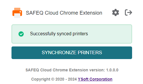 After successful login, verify your configuration by clicking the extension icon. You should see the "Successfully synced printers" message.