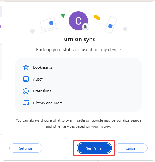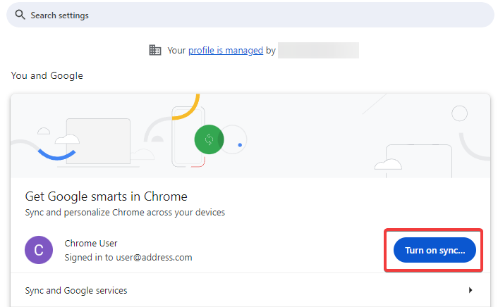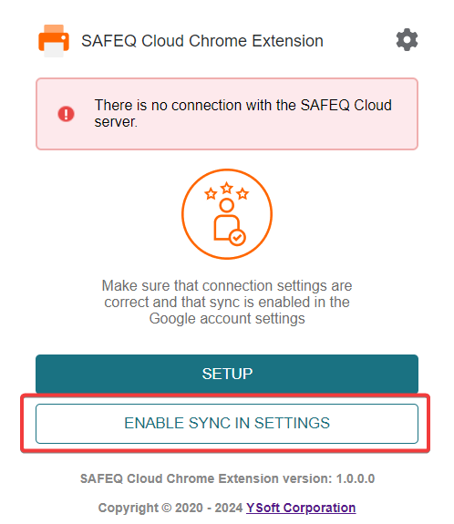 In your Chrome browser, go to chrome://settings/people or click the SAFEQ Cloud extension icon and then click Enable sync in settings.