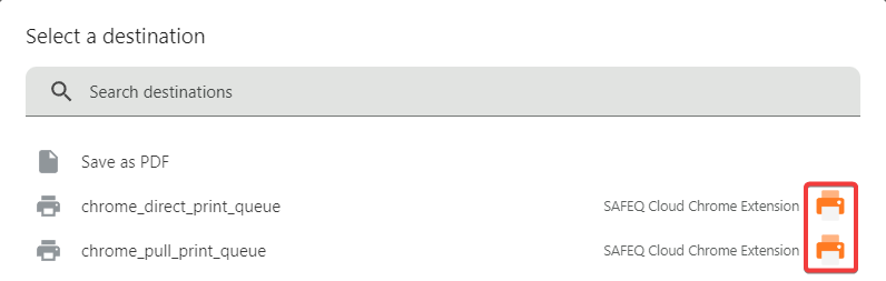 Select a printer with the SAFEQ Cloud Chrome extension icon.
